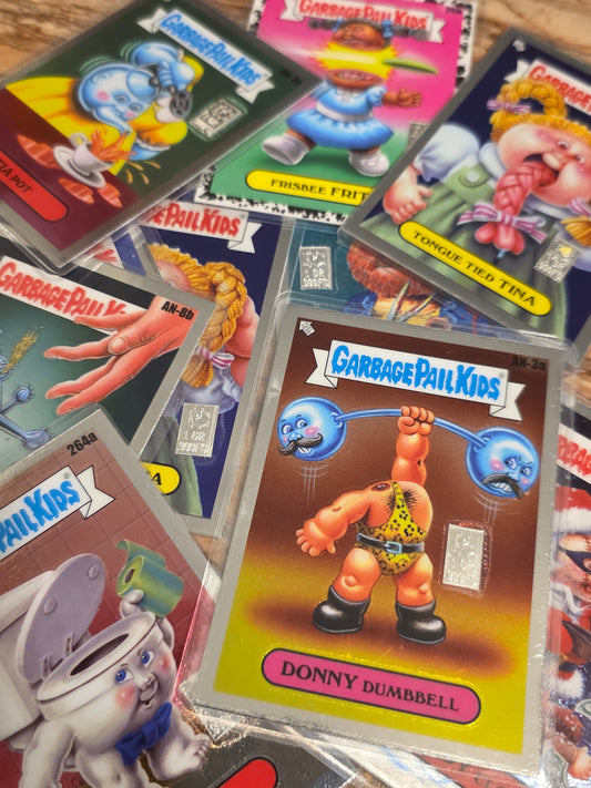 X10 Pack Garbage Pail Kids Cards with 1 grain silver bars in each