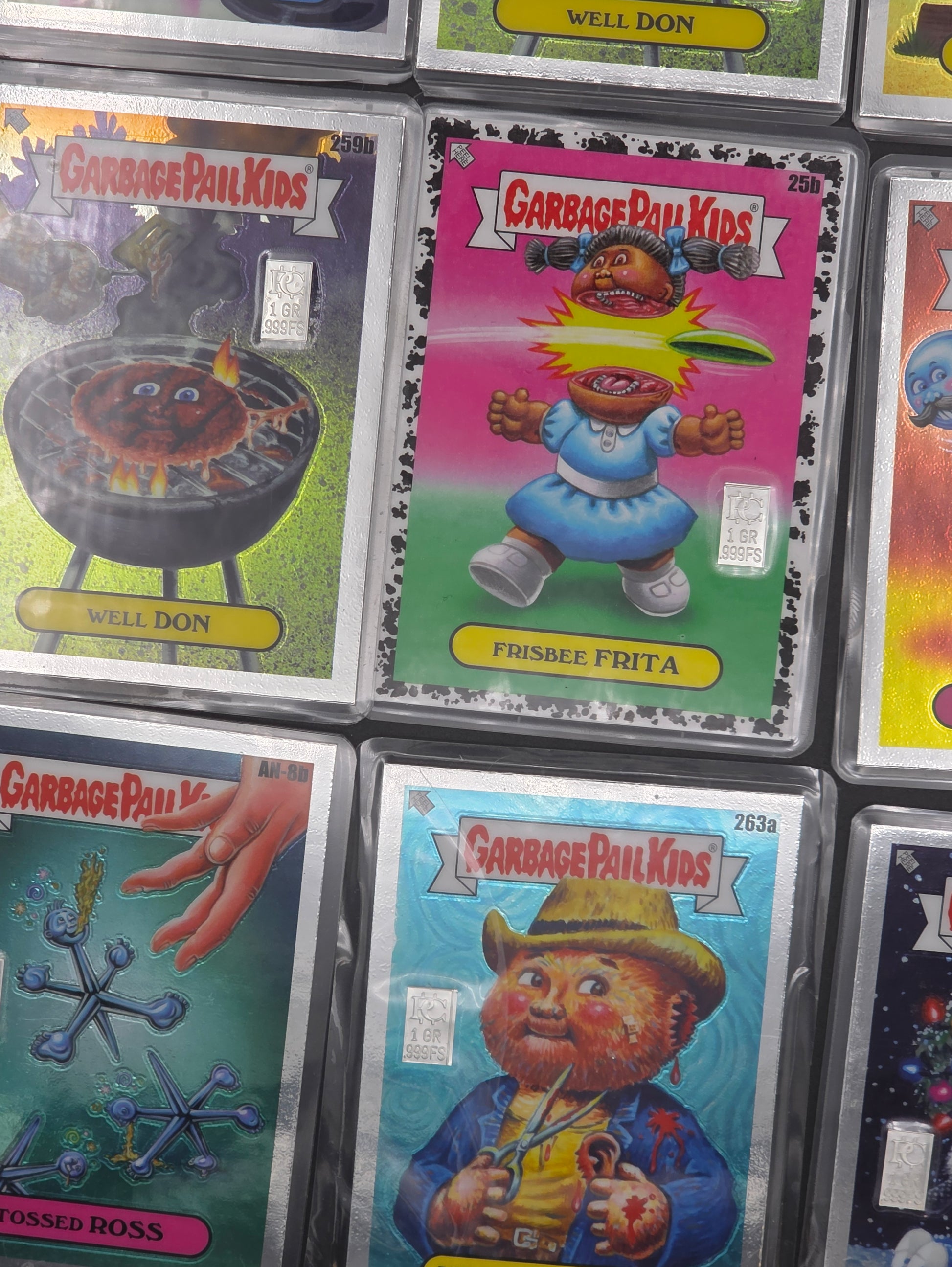 X10 Pack Garbage Pail Kids Cards with 1 grain silver bars in each
